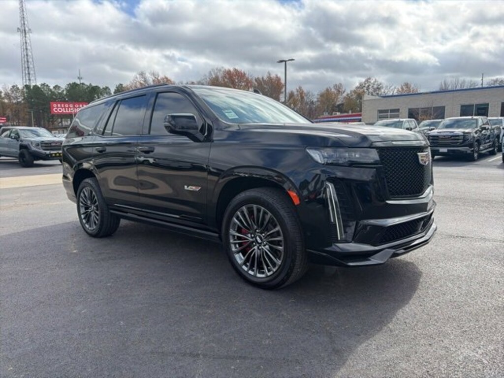 This 2023 Cadillac Escalade comes equipped with Heavy-Duty Trailering Package (Trailer Tire Pressure Monitoring System, Trailering Assist Guidelines, and Wired Auxiliary Trailer Camera (LPO)), Preferred Equipment Group 1SD (Active Noise Cancellation, Adaptive Cruise Control, AKG Studio Reference 36-Speaker Audio System, Automatic Seat Belt Tightening, Body-Color Door Handles, Door Lock & Latch Shields, Electronic Limited-Slip Differential, Enhanced Automatic Emergency Braking, Enhanced Automatic Parking Assist, Floor Console w/Covered Storage, Glass Breakage Sensor, Heated & Ventilated Driver & Front Passenger Seats, Hitch Guidance w/Hitch View, Integrated Trailer Brake Controller, Platinum Interior Trim, Power Lumbar Massage Driver Seat, Power Lumbar Massage Front Passenger Seat, Power Panoramic Tilt-Sliding Sunroof, Power-Retractable Assist Steps, Rear Camera Mirror, Rear Camera Mirror Washer, Rear Cross Traffic Alert, Rear Seat Entertainment System, Reconfigurable Full-Color Head-Up Display, Reverse Automatic Braking, Smart Trailer Integration Indicator, Theft-Deterrent Alarm System, Trailer Side Blind Zone Alert, Vehicle Inclination Sensor, Vehicle Interior Movement Sensor, and Front Auxiliary 12-volt Power Outlet), Touring Package (Air Ride Adaptive Suspension, Illuminating Front & Rear Sill Plates, and Soft Closing Front & Rear Doors), Cadillac Certified Pre-Owned Certified, AWD, Jet Black Leather, Navigation System, 16.9 Diagonal OLED Infotainment Screen, 2-Presets Memory For Driver Seat Adjuster, 3 Years of OnStar & Connected Services Plan, 3.23 Axle Ratio, 3rd row seats: split-bench, 4-Way Power Driver Lumbar Seat Adjuster, 4-Way Power Front Passenger Lumbar Seat Adjuster, 4-Wheel Disc Brakes, 8-Way Power Driver Seat Adjuster, 8-Way Power Front Passenger Seat Adjuster, A/V remote, ABS brakes, Adaptive suspension, Air Conditioning, Alloy wheels, AM/FM radio: SiriusXM with 360L, Apple CarPlay/Android Auto, Audio memory, Auto High-beam Headlights, Auto tilt-away steering wheel, Auto-dimming door mirrors, Auto-dimming Rear-View mirror, Automatic temperature control, Brake assist, Bumpers: body-color, Compass, Cooled Console w/Covered Storage, Delay-off headlights, Door auto-latch, Driver door bin, Driver vanity mirror, Dual front impact airbags, Dual front side impact airbags, Electronic Stability Control, Emergency communication system: OnStar and Cadillac connected services capable, Exterior Parking Camera Rear, Four wheel independent suspension, Front anti-roll bar, Front Bucket Seats, Front Center Armrest w/Storage, Front dual zone A/C, Front License Plate Bracket, Front reading lights, Front Reflective Window Shade (LPO), Full Semi-Aniline Leather Seat Trim, Fully automatic headlights, Garage door transmitter, Genuine wood console insert, Genuine wood dashboard insert, Genuine wood door panel insert, HD Radio, Headphones, Heads-Up Display, Heated door mirrors, Heated Driver & Front Passenger Seats, Heated front seats, Heated rear seats, Heated steering wheel, Illuminated Cargo Sill Plate (LPO), Illuminated entry, Leather steering wheel, Low tire pressure warning, Magnetic Ride Control Suspension, Memory seat, Night vision lights, Not Equipped w/2nd Row Express-Up Window Control, Occupant sensing airbag, Outside temperature display, Overhead airbag, Overhead console, Panic alarm, Passenger door bin, Passenger vanity mirror, Power door mirrors, Power driver seat, Power Liftgate, Power moonroof, Power passenger seat, Power steering, Power windows, Radio data system, Radio: AM/FM w/Navigation, Rain sensing wipers, Rear air conditioning, Rear anti-roll bar, Rear audio controls, Rear reading lights, Rear window defroster, Rear window wiper, Remote keyless entry, Security system, SiriusXM w/360L, Speed control, Split folding rear seat, Spoiler, Steering wheel memory, Steering wheel mounted audio controls, Super Cruise, Tachometer, Teen Driver, Telescoping steering wheel, Til