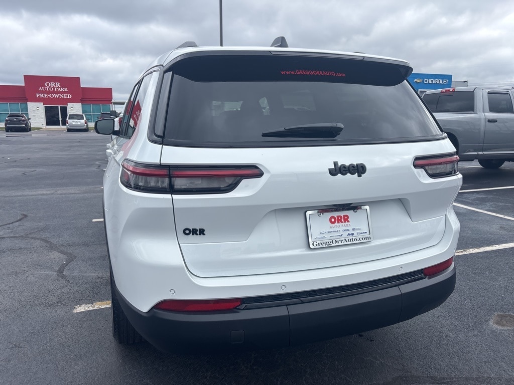 Pricing excludes tax, tag, license fees, dealers $129 doc fee, $1,995 in dealer addendum. See dealer for exact pricing. Some discounts require dealership to arrange financing, price not available with 0% or incentivized rates. See dealer for details. This 2025 Jeep Grand Cherokee L comes equipped with these features Quick Order Package 23M Altitude X (115V Auxiliary Power Outlet, 3rd Row Charge-Only USB Ports, Altitude X, Black Headliner, Capri Leatherette/Suede Seats, Delete Laredo Badge, Gloss Black Exterior Accents, Heated Front Seats, Heated Steering Wheel, Power Liftgate, Power Sunroof, Rain Sensitive Windshield Wipers, Remote Start System, Selectable Tire Fill Alert, Wheels: 18" x 8.0" Fully Painted Aluminum 1, and Wireless Charging Pad), 3.45 Rear Axle Ratio, 3rd row seats: split-bench, 4-Wheel Disc Brakes, 6 Speakers, ABS brakes, Air Conditioning, Alloy wheels, AM/FM radio: SiriusXM, Anti-whiplash front head restraints, Automatic temperature control, Brake assist, Bumpers: body-color, Cloth Seats, Compass, Delay-off headlights, Driver door bin, Driver vanity mirror, Dual front impact airbags, Dual front side impact airbags, Electronic Stability Control, Emergency communication system, Four wheel independent suspension, Front anti-roll bar, Front Bucket Seats, Front Center Armrest w/Storage, Front dual zone A/C, Front reading lights, Fully automatic headlights, Heated door mirrors, Illuminated entry, Knee airbag, Low tire pressure warning, Manual Fold Seatbacks, Model Year Tracking, Normal Duty Suspension, Occupant sensing airbag, Outside temperature display, Overhead airbag, Overhead console, Panic alarm, ParkView Rear Back-Up Camera, Passenger door bin, Passenger vanity mirror, Power door mirrors, Power driver seat, Power steering, Power windows, Radio data system, Radio: Uconnect 5 w/8.4" Display, Rear air conditioning, Rear anti-roll bar, Rear reading lights, Rear window defroster, Rear window wiper, Reclining 3rd row seat, Remote keyless entry, Security system, Speed control, Speed-Sensitive Wipers, Split folding rear seat, Spoiler, Steering wheel mounted audio controls, Tachometer, Telescoping steering wheel, Tilt steering wheel, Traction control, Trip computer, Variably intermittent wipers, Voltmeter, and Wheels: 18" x 8.0" Fully Painted Aluminum.