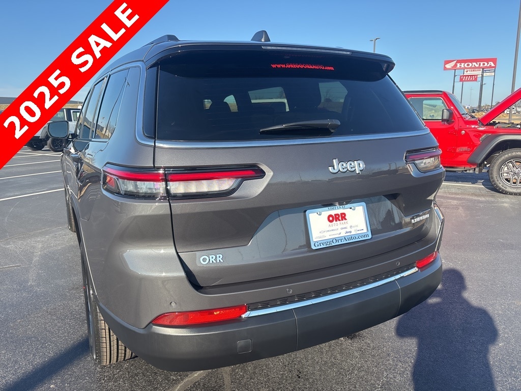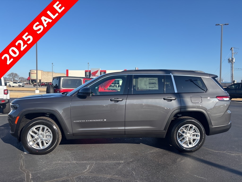 Pricing excludes tax, tag, license fees, dealers $129 doc fee, $1,995 in dealer addendum. See dealer for exact pricing. Some discounts require dealership to arrange financing, price not available with 0% or incentivized rates. See dealer for details. This 2025 Jeep Grand Cherokee L comes equipped with these features Quick Order Package 23D Laredo X (Laredo X and Power Sunroof), 3.45 Rear Axle Ratio, 3rd row seats: split-bench, 4-Wheel Disc Brakes, 6 Speakers, ABS brakes, Air Conditioning, Alloy wheels, AM/FM radio: SiriusXM, Anti-whiplash front head restraints, Automatic temperature control, Brake assist, Bumpers: body-color, Cloth Seats, Compass, Delay-off headlights, Driver door bin, Driver vanity mirror, Dual front impact airbags, Dual front side impact airbags, Electronic Stability Control, Emergency communication system, Four wheel independent suspension, Front anti-roll bar, Front Bucket Seats, Front Center Armrest w/Storage, Front dual zone A/C, Front reading lights, Fully automatic headlights, Heated door mirrors, Illuminated entry, Knee airbag, Low tire pressure warning, Manual Fold Seatbacks, Model Year Tracking, Normal Duty Suspension, Occupant sensing airbag, Outside temperature display, Overhead airbag, Overhead console, Panic alarm, ParkView Rear Back-Up Camera, Passenger door bin, Passenger vanity mirror, Power door mirrors, Power driver seat, Power steering, Power windows, Radio data system, Radio: Uconnect 5 w/8.4" Display, Rear air conditioning, Rear anti-roll bar, Rear reading lights, Rear window defroster, Rear window wiper, Reclining 3rd row seat, Remote keyless entry, Security system, Speed control, Speed-Sensitive Wipers, Split folding rear seat, Spoiler, Steering wheel mounted audio controls, Tachometer, Telescoping steering wheel, Tilt steering wheel, Traction control, Trip computer, Variably intermittent wipers, Voltmeter, and Wheels: 18" x 8.0" Fully Painted Aluminum.