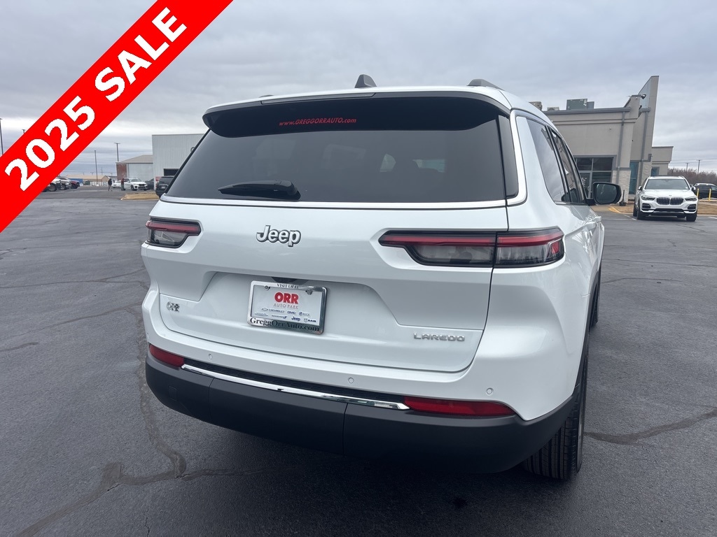 Pricing excludes tax, tag, license fees, dealers $129 doc fee, $1,995 in dealer addendum. See dealer for exact pricing. Some discounts require dealership to arrange financing, price not available with 0% or incentivized rates. See dealer for details. This 2025 Jeep Grand Cherokee L comes equipped with these features Quick Order Package 23D Laredo X (Laredo X and Power Sunroof), 3.45 Rear Axle Ratio, 3rd row seats: split-bench, 4-Wheel Disc Brakes, 6 Speakers, ABS brakes, Air Conditioning, Alloy wheels, AM/FM radio: SiriusXM, Anti-whiplash front head restraints, Automatic temperature control, Brake assist, Bumpers: body-color, Cloth Seats, Compass, Delay-off headlights, Driver door bin, Driver vanity mirror, Dual front impact airbags, Dual front side impact airbags, Electronic Stability Control, Emergency communication system, Four wheel independent suspension, Front anti-roll bar, Front Bucket Seats, Front Center Armrest w/Storage, Front dual zone A/C, Front reading lights, Fully automatic headlights, Heated door mirrors, Illuminated entry, Knee airbag, Low tire pressure warning, Manual Fold Seatbacks, Model Year Tracking, Normal Duty Suspension, Occupant sensing airbag, Outside temperature display, Overhead airbag, Overhead console, Panic alarm, ParkView Rear Back-Up Camera, Passenger door bin, Passenger vanity mirror, Power door mirrors, Power driver seat, Power steering, Power windows, Radio data system, Radio: Uconnect 5 w/8.4" Display, Rear air conditioning, Rear anti-roll bar, Rear reading lights, Rear window defroster, Rear window wiper, Reclining 3rd row seat, Remote keyless entry, Security system, Speed control, Speed-Sensitive Wipers, Split folding rear seat, Spoiler, Steering wheel mounted audio controls, Tachometer, Telescoping steering wheel, Tilt steering wheel, Traction control, Trip computer, Variably intermittent wipers, Voltmeter, and Wheels: 18" x 8.0" Fully Painted Aluminum.