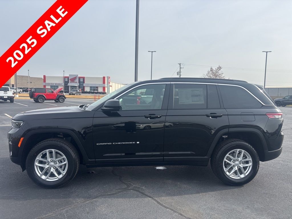 Pricing excludes tax, tag, license fees, dealers $129 doc fee, $1,995 in dealer addendum. See dealer for exact pricing. Some discounts require dealership to arrange financing, price not available with 0% or incentivized rates. See dealer for details. This 2025 Jeep Grand Cherokee comes equipped with these features Quick Order Package 23D Laredo X (Laredo X, Power Sunroof, and Wheels: 18" x 8" Fully Painted Aluminum), 4WD, 4-Wheel Disc Brakes, 6 Speakers, ABS brakes, Air Conditioning, Alloy wheels, AM/FM radio: SiriusXM, Anti-whiplash front head restraints, Automatic temperature control, Brake assist, Bumpers: body-color, Cloth Seats, Compass, Delay-off headlights, Driver door bin, Driver vanity mirror, Dual front impact airbags, Dual front side impact airbags, Electronic Stability Control, Emergency communication system, Four wheel independent suspension, Front anti-roll bar, Front Bucket Seats, Front Center Armrest w/Storage, Front dual zone A/C, Front reading lights, Fully automatic headlights, Heated door mirrors, Illuminated entry, Knee airbag, Low tire pressure warning, Model Year Tracking, Normal Duty Suspension, Occupant sensing airbag, Outside temperature display, Overhead airbag, Overhead console, Panic alarm, ParkView Rear Back-Up Camera, Passenger door bin, Passenger vanity mirror, Power door mirrors, Power driver seat, Power steering, Power windows, Radio data system, Radio: Uconnect 5 with 8.4" Display, Rear anti-roll bar, Rear reading lights, Rear window defroster, Rear window wiper, Remote keyless entry, Security system, Speed control, Speed-Sensitive Wipers, Split folding rear seat, Spoiler, Steering wheel mounted audio controls, Tachometer, Telescoping steering wheel, Tilt steering wheel, Traction control, Trip computer, Variably intermittent wipers, Voltmeter, and Wheels: 17" x 6.5" Fully Painted Aluminum.