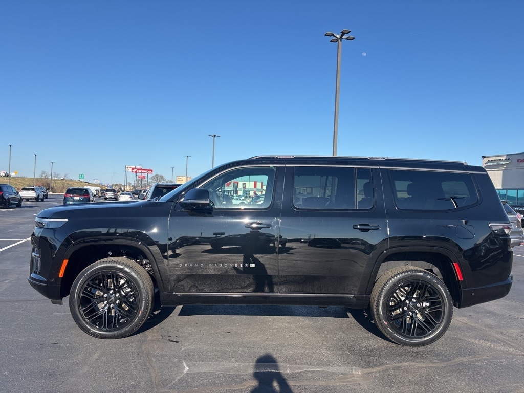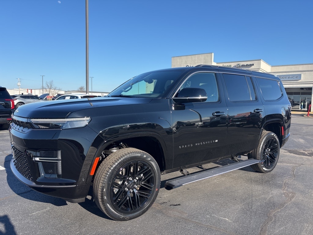 Pricing excludes tax, tag, license fees, dealers $129 doc fee, $1,995 in dealer addendum. See dealer for exact pricing. Some discounts require dealership to arrange financing, price not available with 0% or incentivized rates. See dealer for details. This 2026 Jeep Grand Wagoneer comes equipped with these features Black Appearance Package (118 Mph Maximum Speed Calibration, Black Exterior Accents, Titanium Daylight Opening Upper, Titanium Upper Grille Applique, and Wheels: 22" x 9" Painted Gloss Black), Limited Reserve Package, Quick Order Package 29D Reserve (19 Speaker McIntosh Audio System, 2nd Row Manual Window Shades, 3 Panel Sunroof, Augmented HUD, Cargo Cover, Cluster 12" TFT Color Display, Instrument Panel, Interior Rear Facing Camera, Luxury Front and Rear Floor Mats, P and P Park and Unpark Assist with Stop System, Power Deployable Running Boards, Quadra-Lift Air Suspension, Reversible Carpet/Vinyl Cargo Mat, Semi Active Damping, Side Distance Warning, Smartphone as a Key Prep, and Surround View Camera System), 3.55 Rear Axle Ratio, 3rd row seats: bench, 4-Wheel Disc Brakes, 9 Speakers, ABS brakes, Air Conditioning, Alloy wheels, AM/FM radio: SiriusXM with 360L, Anti-whiplash front head restraints, Apple CarPlay/Android Auto, Audio memory, Auto Adjust in Reverse Exterior Mirrors, Auto High-beam Headlights, Auto-dimming door mirrors, Auto-Dimming Exterior Driver Mirror, Auto-dimming Rear-View mirror, Auto-leveling suspension, Automatic temperature control, Brake assist, Bumpers: body-color, Compass, Delay-off headlights, Driver door bin, Driver vanity mirror, Driver's Seat Mounted Armrest, Dual front impact airbags, Dual front side impact airbags, Electronic Stability Control, Emergency communication system: Jeep Connect, Exterior Mirrors Approach Lamps, Exterior Mirrors with Memory, Exterior Mirrors with Supplemental Signals, Exterior Parking Camera Rear, Four wheel independent suspension, Front anti-roll bar, Front Bucket Seats, Front Center Armrest w/Storage, Front dual zone A/C, Front fog lights, Front reading lights, Fully automatic headlights, Garage door transmitter, Heated door mirrors, Heated Exterior Mirrors, Heated front seats, Heated rear seats, Heated steering wheel, Illuminated entry, Knee airbag, Leather Trimmed Bucket Seats, Low tire pressure warning, Manufacturer Statement of Origin, Memory seat, MyFlexCare Service Plan, Navigation System, Normal Duty Suspension, Occupant sensing airbag, Outside temperature display, Overhead airbag, Overhead console, Panic alarm, Passenger door bin, Passenger seat mounted armrest, Passenger vanity mirror, Power door mirrors, Power driver seat, Power Liftgate, Power passenger seat, Power steering, Power windows, Radio data system, Radio: Uconnect 5 Nav with 12.0" Display, Rain sensing wipers, Rear air conditioning, Rear anti-roll bar, Rear reading lights, Rear seat center armrest, Rear window defroster, Rear window wiper, Reclining 3rd row seat, Remote keyless entry, Security system, Speed control, Speed-sensing steering, Speed-Sensitive Wipers, Split folding rear seat, Steering wheel memory, Steering wheel mounted audio controls, Tachometer, Telescoping steering wheel, Tilt steering wheel, Traction control, Trip computer, Turn signal indicator mirrors, Variably intermittent wipers, Ventilated front seats, Ventilated rear seats, Voltmeter, and Wheels: 20" x 9" Aluminum Painted.