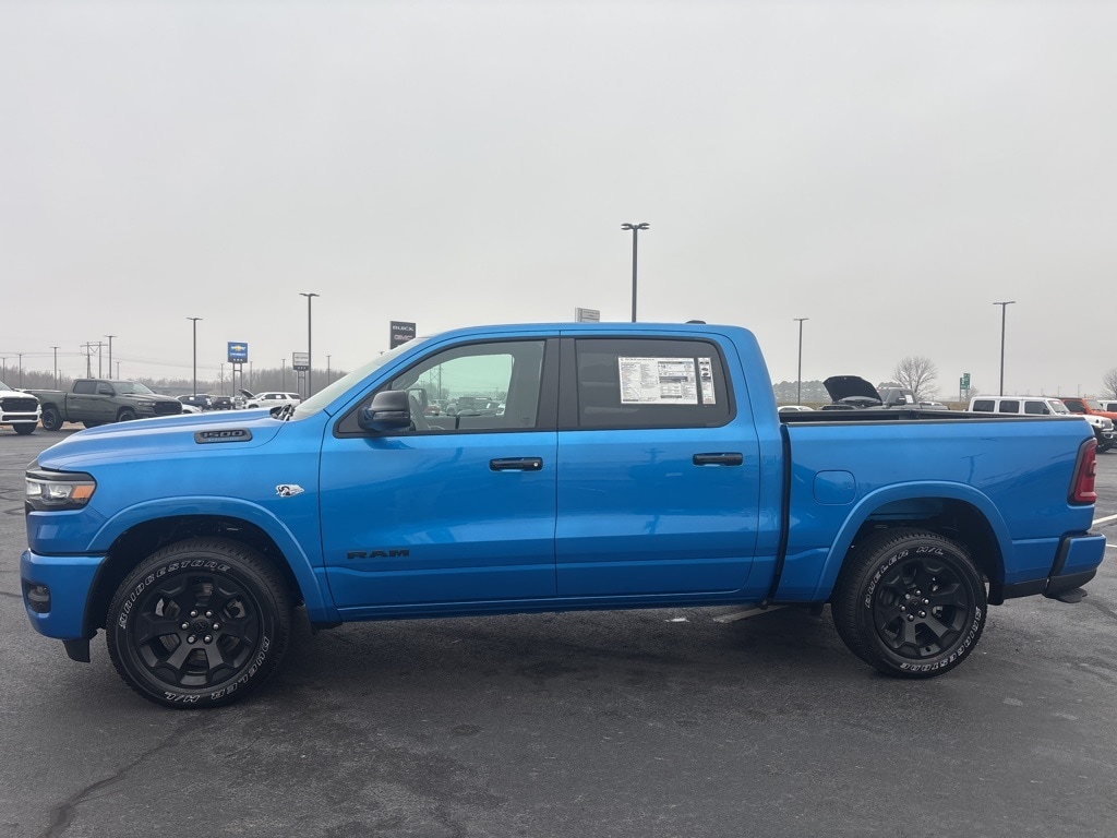 Pricing excludes tax, tag, license fees, dealers $129 doc fee, $1,995 in dealer addendum. See dealer for exact pricing. Some discounts require dealership to arrange financing, price not available with 0% or incentivized rates. See dealer for details. This 2026 Ram 1500 comes equipped with these features Bed Utility Group (Exterior 115V AC Outlet, MOPAR 4 Adjustable Cargo Tie-Down Hooks, MOPAR Spray in Bedliner, and Pick-Up Box Lighting), Big Horn Level 1 Equipment Group (115V Auxiliary Power Outlet, 2nd Row in Floor Storage Bins, 3 Rear Seat Head Restraints, 4 Way Front Headrests, 400W Inverter, Auto Power-Folding Mirrors, Auto-Dimming Exterior Driver Mirror, Auto-Dimming Rear-View Mirror, Black Exterior Mirrors, Black Premium Power Mirrors, Body Color Fender Flares, Bucket Seats, Center Console Parts Module, Convex Wide-Angle Exterior Mirror Insert, Deluxe Cloth Bucket Seats, Exterior Mirrors Courtesy Lamps, Exterior Mirrors with Heating Element, Exterior Mirrors with Supplemental Signals, Front Seat Back Map Pockets, Full Length Floor Console, Glove Box Lamp, Heated Front Seats, Heated Steering Wheel, Leather Wrapped Steering Wheel, Manual Adjust 4-Way Front Passenger Seat, Power 2-Way Driver Lumbar Adjust, Power Adjust 8-Way Driver Seat, Power Adjustable Pedals, Rear 60/40 Folding Seat, Rear Center Armrest, Rear Dome with on/Off Switch Lamp, Rear Power Sliding Window, Rear Window Defroster, SiriusXM Radio Service, SiriusXM Satellite Radio, Steering Wheel Mounted Audio Controls, Sun Visors with Illuminated Vanity Mirrors, and Universal Garage Door Opener), Night Edition (Accent Color Door Handles, Accent Color Premium Power Mirrors, Accent Color Tailgate Handle, Anti-Spin Differential Rear Axle, Black Exterior Truck Badging, Black Headlamp Bezels, Black Interior Accents, Black Painted Exterior Mirrors Caps, Black Tail Lamp Bezels, Body Color Front Bumper, Body Color Rear Bumper with Step Pads, Dual Exhaust with Black Tips, Grille Black Surround Black Mesh, RAM Grille Badge - Black, and Wheels: 20" x 9.0" Aluminum Painted Clad), Quick Order Package 23Z Big Horn, Quick Order Package 27Z Big Horn, 4-Wheel Disc Brakes, 48V Belt Starter Generator, 4G LTE Wi-Fi Hot Spot, 6 Speakers, ABS brakes, Air Conditioning, Alloy wheels, AM/FM radio, Apple CarPlay, Apple CarPlay/Android Auto, Auto High-beam Headlights, Brake assist, Bumpers: chrome, Cloth Bucket Seats, Compass, Connectivity - US/Canada, Delay-off headlights, Driver door bin, Dual front impact airbags, Dual front side impact airbags, Electronic Stability Control, Front anti-roll bar, Front Bucket Seats, Front Center Armrest w/Storage, Front fog lights, Front License Plate Bracket, Front reading lights, Front wheel independent suspension, Fully automatic headlights, Global Telematics Box Module, Google Android Auto, GPS Antenna Input, Heated door mirrors, Illuminated entry, Integrated Center Stack Radio, Integrated Voice Command with Bluetooth, Low tire pressure warning, Manual Adjust 4-Way Driver Seat, Manual Folding Exterior Mirrors, MOPAR Front and Rear Rubber Floor Mats, MyFlexCare Service Plan, Occupant sensing airbag, Outside temperature display, Overhead airbag, Overhead console, Panic alarm, ParkView Rear Back-Up Camera, Passenger door bin, Passenger vanity mirror, Power door mirrors, Power steering, Power windows, Radio data system, Radio: Uconnect 5 W with 8.4" Display, RAM Grille Badge - Chrome, Rear anti-roll bar, Rear step bumper, Remote keyless entry, Speed control, Supplier Part Tracking (J-1), Tachometer, Telescoping steering wheel, Tilt steering wheel, Traction control, Trailer Brake Control, Trip computer, USB Host Flip, Variably intermittent wipers, and Voltmeter.