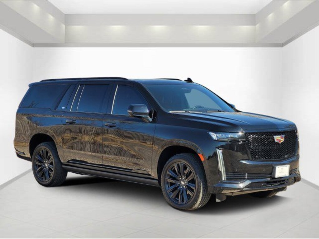 This 2022 Cadillac Escalade ESV comes equipped with Preferred Equipment Group 1SH (Adaptive Cruise Control, AKG Studio Reference 36-Speaker Audio System, Automatic Seat Belt Tightening, Automatic Stop/Start, Body-Color Door Handles, Door Lock & Latch Shields, Electronic Limited-Slip Differential, Enhanced Automatic Emergency Braking, Enhanced Automatic Parking Assist, Floor Console w/Covered Storage, Glass Breakage Sensor, Heated & Ventilated Driver & Front Passenger Seats, Hitch Guidance w/Hitch View, Integrated Trailer Brake Controller, Platinum Interior Trim, Power Lumbar Massage Driver Seat, Power Lumbar Massage Front Passenger Seat, Power Panoramic Tilt-Sliding Sunroof, Rear Camera Mirror, Rear Camera Mirror Washer, Rear Cross Traffic Alert, Rear Seat Entertainment System, Reconfigurable Full-Color Head-Up Display, Reverse Automatic Braking, Running Board Assist Steps, Smart Trailer Integration Indicator, Start/Stop System Disable Button, Theft-Deterrent Alarm System, Trailer Side Blind Zone Alert, Vehicle Inclination Sensor, Vehicle Interior Movement Sensor, and Front Auxiliary 12-volt Power Outlet), Touring Package (Air Ride Adaptive Suspension, Illuminating Front & Rear Sill Plates, and Soft Closing Front & Rear Doors), 4WD, Navigation System, 1.5 kW Heater/Defrost Air System, 16.9 Diagonal OLED Infotainment Screen, 2-Presets Memory For Driver Seat Adjuster, 3.23 Axle Ratio, 3rd row seats: split-bench, 4-Way Power Driver Lumbar Seat Adjuster, 4-Way Power Front Passenger Lumbar Seat Adjuster, 4-Wheel Disc Brakes, 8-Way Power Driver Seat Adjuster, 8-Way Power Front Passenger Seat Adjuster, A/V remote, ABS brakes, Adaptive suspension, Air Conditioning, Alloy wheels, AM/FM radio: SiriusXM with 360L, Apple CarPlay/Android Auto, Audio memory, Auto High-beam Headlights, Auto tilt-away steering wheel, Auto-dimming door mirrors, Automatic temperature control, Brake assist, Bumpers: body-color, Compass, Delay-off headlights, Door auto-latch, Driver door bin, Driver vanity mirror, Dual front impact airbags, Dual front side impact airbags, Electronic Stability Control, Emergency communication system: OnStar and Cadillac connected services capable, Engine Block Heater, Four wheel independent suspension, Front anti-roll bar, Front Bucket Seats, Front Center Armrest w/Storage, Front dual zone A/C, Front License Plate Bracket, Front reading lights, Full Semi-Aniline Leather Seats, Fully automatic headlights, Garage door transmitter, Genuine wood console insert, Genuine wood dashboard insert, Genuine wood door panel insert, HD Radio, Headphones, Heads-Up Display, Heated door mirrors, Heated Driver & Front Passenger Seats, Heated front seats, Heated rear seats, Heated steering wheel, Illuminated entry, Leather steering wheel, Low tire pressure warning, Magnetic Ride Control Suspension, Memory seat, Night Vision, Not Equipped w/Steering Column Lock, Occupant sensing airbag, Outside temperature display, Overhead airbag, Overhead console, Panic alarm, Passenger door bin, Passenger vanity mirror, Power door mirrors, Power driver seat, Power Liftgate, Power moonroof, Power passenger seat, Power steering, Power windows, Power-Retractable Assist Steps, Radio data system, Radio: AM/FM/SiriusXM w/Navigation, Rain sensing wipers, Rear air conditioning, Rear anti-roll bar, Rear audio controls, Rear reading lights, Rear window defroster, Rear window wiper, Remote keyless entry, Roof rack: rails only, Security system, SiriusXM w/360L, Speed control, Split folding rear seat, Spoiler, Steering wheel memory, Steering wheel mounted audio controls, Super Cruise, Tachometer, Teen Driver, Telescoping steering wheel, Tilt steering wheel, Traction control, Trip computer, Turn signal indicator mirrors, Variably intermittent wipers, Ventilated front seats, Voltmeter, Wheels: 22 12-Spoke Polished Alloy, and Wireless Apple CarPlay/Wireless Android Auto. CARFAX One-Owner. Clean CARFAX. 20/26 City/Highway MPG One O