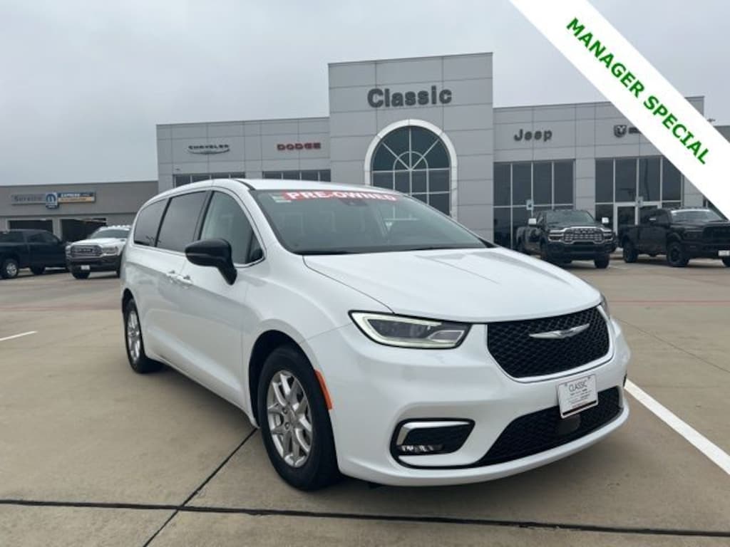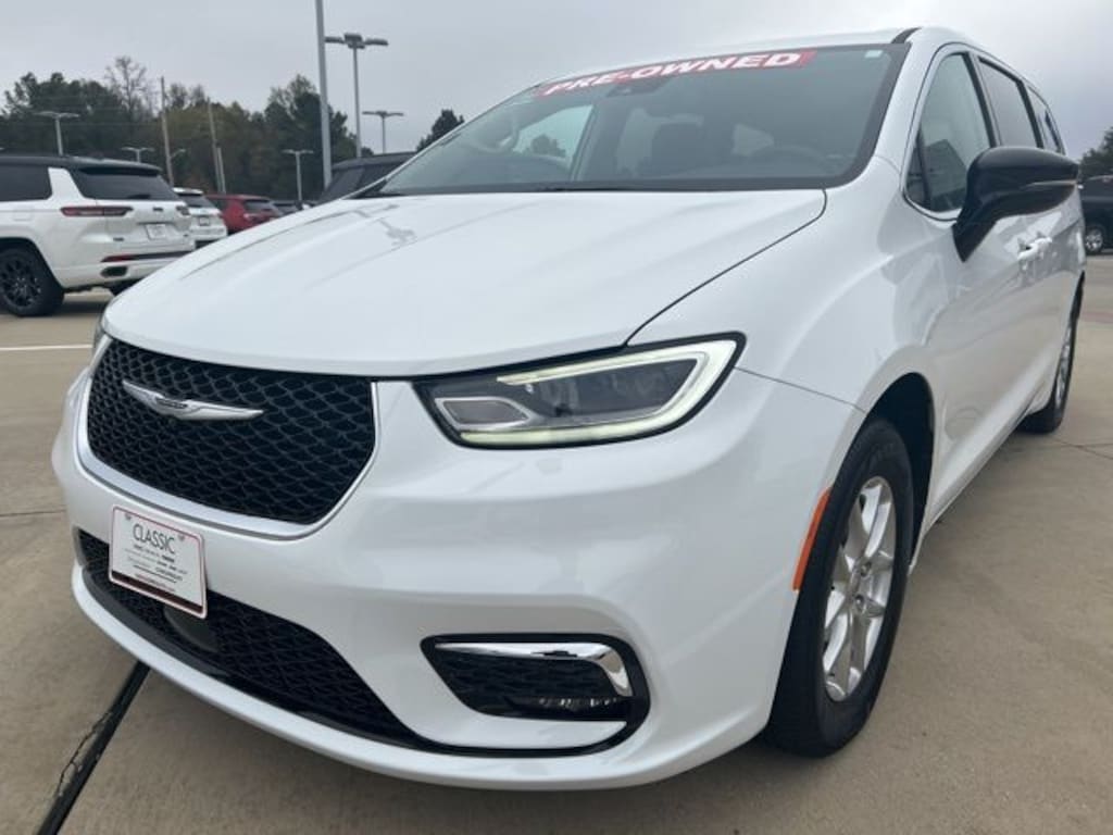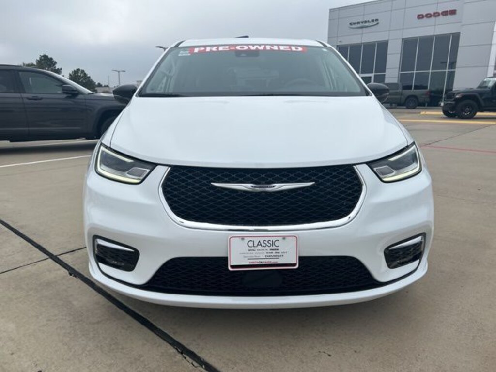 CARFAX One-Owner. 19/28 City/Highway MPG Classic CDJR in Texarkana is proud to offer this wonderful 2024 Chrysler Pacifica in Bright White Clearcoat. This 2024 Chrysler Pacifica comes with the following features; Quick Order Package 27L, 10.1" Touchscreen Display, 17" x 7.0" Aluminum Wheels, 3.25 Axle Ratio, 3rd row seats: split-bench, 4-Wheel Disc Brakes, 6 Speakers, ABS brakes, Air Conditioning, Alloy wheels, AM/FM radio: SiriusXM, Apple CarPlay, Apple CarPlay/Android Auto, Automatic temperature control, Black Seats, Brake assist, Bumpers: body-color, Caprice Leatherette Bucket Seats, Compass, Delay-off headlights, Disassociated Touchscreen Display, Driver door bin, Driver vanity mirror, Driver's Seat Mounted Armrest, Dual front impact airbags, Dual front side impact airbags, Electronic Stability Control, Four wheel independent suspension, Front anti-roll bar, Front Bucket Seats, Front dual zone A/C, Front fog lights, Front reading lights, Fully automatic headlights, Google Android Auto, GPS Antenna Input, Heated door mirrors, Heated front seats, Heated steering wheel, Illuminated entry, Integrated Active Noise Cancellation, Integrated Center Stack Radio, Knee airbag, Low tire pressure warning, Manufacturer's Statement of Origin, Memory seat, Occupant sensing airbag, Outside temperature display, Overhead airbag, Overhead console, Panic alarm, ParkView Rear Back-Up Camera, Passenger door bin, Passenger seat mounted armrest, Passenger vanity mirror, Power door mirrors, Power driver seat, Power Liftgate, Power steering, Power windows, Radio data system, Radio: Uconnect 5 w/10.1" Display, Rain sensing wipers, Rear air conditioning, Rear reading lights, Rear window defroster, Rear window wiper, Reclining 3rd row seat, Remote keyless entry, Security system, Speed control, Split folding rear seat, Spoiler, Steering wheel mounted audio controls, Tachometer, Telescoping steering wheel, Tilt steering wheel, Touring Suspension, Traction control, Trip computer, Turn signal indicator mirrors, USB Host Flip, Variably intermittent wipers, and Voltmeter.