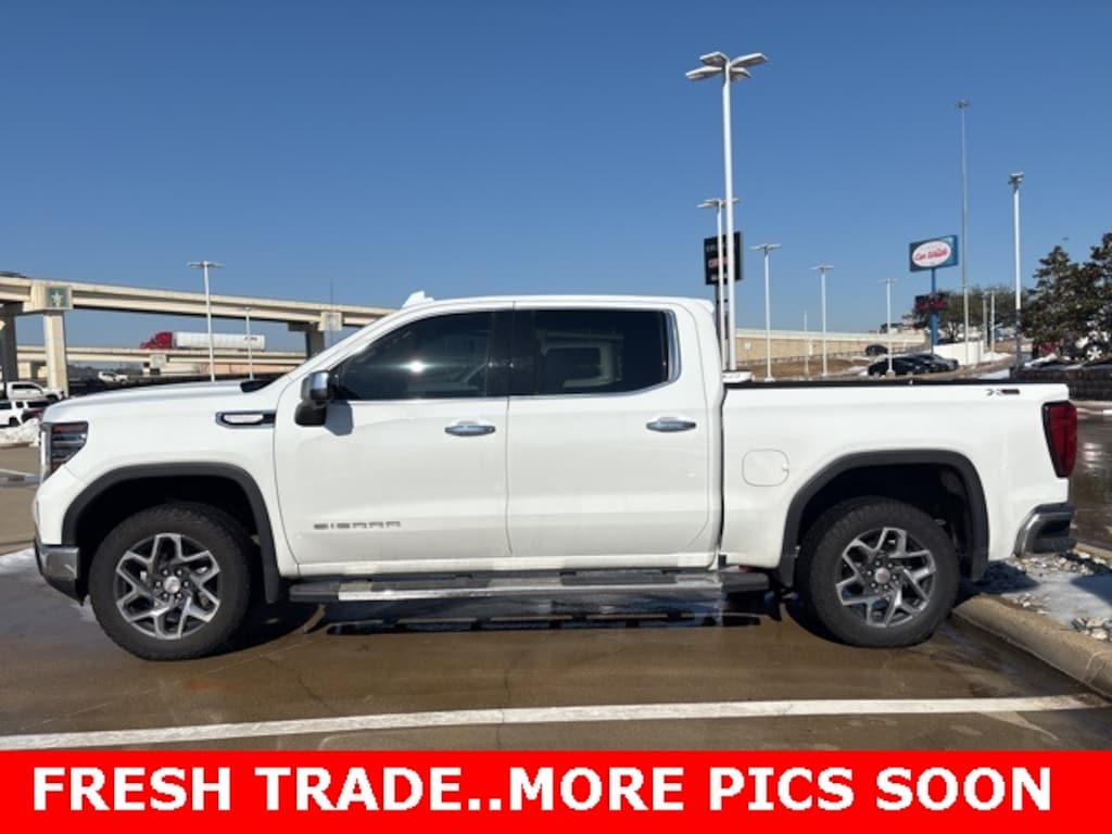 This 2023 GMC Sierra 1500 comes equipped with the following features High Capacity Suspension Package, Preferred Equipment Group 4SA (120-Volt Bed Mounted Power Outlet, 120-Volt Instrument Panel Power Outlet, 170 Amp Alternator, 2 Charge/Data USB Ports, 2 Type-C Charge-Only Rear USB Ports, 6-Speaker Audio System Feature, Auto-Locking Rear Differential, Auxiliary External Transmission Oil Cooler, Chrome Header & Chrome Grille Insert Bars, Color-Keyed Carpeting Floor Covering, Compass, Deep-Tinted Glass, Electric Rear-Window Defogger, Electrical Steering Column Lock, Front Frame-Mounted Black Recovery Hooks, Front Rainsensing Wipers, GMC Connected Access Capable, HD Rear Vision Camera, Keyless Open & Start, LED Cargo Area Lighting, Manual Tilt-Wheel & Telescoping Steering Column, OnStar & GMC Connected Services Capable, Perimeter Lighting, Power Door Locks, Power Front Passenger Windows w/Express Up/Down, Power Front Windows w/Driver Express Up/Down, Power Rear Windows w/Express Down, Push Button Start, Rear Wheelhouse Liners, Remote Vehicle Starter System, SiriusXM w/360L, Steering Wheel Audio Controls, Theft Deterrent System (Unauthorized Entry), Wi-Fi Hotspot Capable, and Wireless Phone Projection), SLT Convenience Package (2 Charge/Data USB Ports Inside Center Console, Electronic Precision Shift, Floor-Mounted Center Console, Front Bucket Seats, Power Rake & Telescoping Steering Column, Premium Bose 7-Speaker Sound System, Ventilated Driver & Front Passenger Seats, and Wireless Charging), SLT Preferred Package (Adaptive Cruise Control, Heated 2nd Row Outboard Seats, Power Sliding Rear Window w/Rear Defogger, and Universal Home Remote), Standard Suspension Package, Texas Edition SLT Premium Package (20" Polished Aluminum Wheels, Chrome Wheel To Wheel Assist Steps, and Texas Edition Badging), Trailering Package (Hitch Guidance), X31 Off-Road & Protection Package (All-Weather Floor Liner (LPO) and Spray-On Pickup Bed Liner w/GMC Logo), X31 Off-Road Package (Dual Exhaust System, Heavy-Duty Air Filter, Hill Descent Control, Off-Road Suspension, and X31 Hard Badge), 10-Speed Automatic, 4WD, Dark Walnut/Slate w/Perf Leather-Appointed Front Outboard Seat Trim, 10-Way Power Driver Seat Adjuster w/Lumbar, 10-Way Power Passenger Seat Adjuster w/Lumbar, 220 Amp Alternator, 3.23 Rear Axle Ratio, 4-Wheel Disc Brakes, 6 Speakers, ABS brakes, Air Conditioning, Alloy wheels, AM/FM radio, Apple CarPlay/Android Auto, Auto High-beam Headlights, Auto-dimming door mirrors, Auto-dimming Rear-View mirror, Automatic Emergency Braking, Automatic temperature control, Brake assist, Buckle to Drive, Bumpers: chrome, Delay-off headlights, Driver door bin, Driver Memory, Driver vanity mirror, Dual front impact airbags, Dual front side impact airbags, Electronic Stability Control, Emergency communication system: OnStar and GMC connected services capable, Engine Block Heater, Following Distance Indicator, Forward Collision Alert, Front 40/20/40 Split-Bench Seat, Front anti-roll bar, Front Center Armrest w/Storage, Front dual zone A/C, Front fog lights, Front License Plate Kit, Front Pedestrian Braking, Front reading lights, Front wheel independent suspension, Fully automatic headlights, Heated door mirrors, Heated Driver & Front Outboard Passenger Seating, Heated front seats, Heated steering wheel, Illuminated entry, IntelliBeam Automatic High Beam On/Off, Lane Keep Assist w/Lane Departure Warning, Low tire pressure warning, Memory seat, Navigation System, Not Equipped w/Steering Column Lock, Occupant sensing airbag, Outside temperature display, Overhead airbag, Overhead console, Panic alarm, Passenger door bin, Passenger vanity mirror, Perf Leather-Appointed Front Outboard Seat Trim, Power door mirrors, Power driver seat, Power passenger seat, Power steering, Power windows, Premium audio system: GMC Infotainment System, Radio data system, Radio: Premium GMC Infotainment Audio System, Rain sensing wipers, Rear reading lights, Rear seat center armrest, Rear