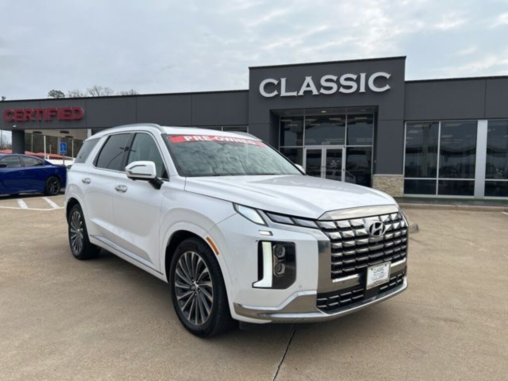 This 2024 Hyundai Palisade comes equipped with the following features Option Group 01, 12 Speakers, 3.648 Axle Ratio, 3rd row seats: split-bench, 4-Wheel Disc Brakes, ABS brakes, Air Conditioning, Alloy wheels, AM/FM radio: SiriusXM, Apple CarPlay & Android Auto, Auto High-beam Headlights, Auto-dimming door mirrors, Auto-dimming Rear-View mirror, Auto-leveling suspension, Automatic temperature control, Brake assist, Bumpers: body-color, Compass, Delay-off headlights, Driver door bin, Driver vanity mirror, Dual front impact airbags, Dual front side impact airbags, Electronic Stability Control, Emergency communication system, Exterior Parking Camera Rear, Four wheel independent suspension, Front anti-roll bar, Front Bucket Seats, Front Center Armrest, Front dual zone A/C, Front reading lights, Fully automatic headlights, Garage door transmitter: HomeLink, harman/kardon® Speakers, Heads-Up Display, Heated & Ventilated Front Bucket Seats, Heated door mirrors, Heated front seats, Heated rear seats, Heated steering wheel, Illuminated entry, Knee airbag, Low tire pressure warning, Memory seat, Navigation System, Occupant sensing airbag, Outside temperature display, Overhead airbag, Overhead console, Panic alarm, Passenger door bin, Passenger vanity mirror, Power door mirrors, Power driver seat, Power Liftgate, Power moonroof, Power passenger seat, Power steering, Power windows, Premium Nappa Leather Seat Trim, Radio data system, Radio: AM/FM/MP3 Premium Audio System, Rain sensing wipers, Rear air conditioning, Rear anti-roll bar, Rear audio controls, Rear reading lights, Rear side impact airbag, Rear window defroster, Rear window wiper, Reclining 3rd row seat, Remote keyless entry, Security system, Speed control, Speed-sensing steering, Split folding rear seat, Spoiler, Steering wheel mounted audio controls, Tachometer, Telescoping steering wheel, Tilt steering wheel, Traction control, Trip computer, Turn signal indicator mirrors, Variably intermittent wipers, Ventilated front seats, Ventilated rear seats, and Wheels: 20" x 7.5J Calligraphy Exclusive Alloy. CARFAX One-Owner. 2024 Hyundai Palisade Calligraphy AWD V6