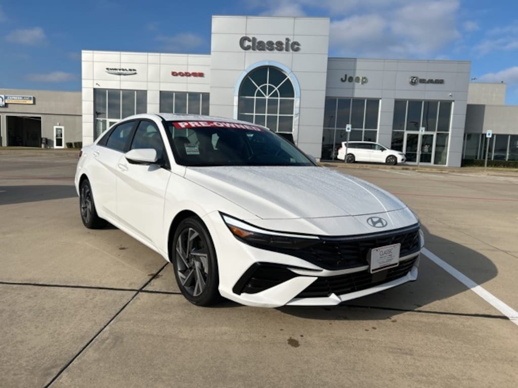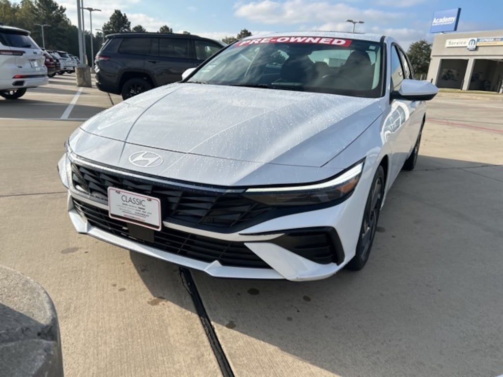 CARFAX One-Owner. 30/39 City/Highway MPG Classic CDJR in Texarkana is proud to offer this superb-looking 2025 Hyundai Elantra in White. This 2025 Hyundai Elantra comes with the following features; Option Group 01, 17" x 7.0J Alloy Wheels, 4-Wheel Disc Brakes, 6 Speakers, ABS brakes, Air Conditioning, Alloy wheels, AM/FM radio: SiriusXM, Apple CarPlay & Android Auto, Auto High-beam Headlights, Automatic temperature control, Brake assist, Bumpers: body-color, Delay-off headlights, Driver door bin, Driver vanity mirror, Dual front impact airbags, Dual front side impact airbags, Electronic Stability Control, Emergency communication system: Bluelink+, Exterior Parking Camera Rear, Front anti-roll bar, Front Bucket Seats, Front Center Armrest, Front dual zone A/C, Front reading lights, Front wheel independent suspension, Fully automatic headlights, Heated door mirrors, Heated Front Bucket Seats, Heated front seats, Illuminated entry, Leather Shift Knob, Leather steering wheel, Low tire pressure warning, Navigation System, Occupant sensing airbag, Outside temperature display, Overhead airbag, Overhead console, Panic alarm, Passenger door bin, Passenger vanity mirror, Power door mirrors, Power moonroof, Power steering, Power windows, Premium Cloth Seat Trim, Radio: AM/FM/HD/SiriusXM Display Audio, Rear seat center armrest, Rear side impact airbag, Rear window defroster, Remote keyless entry, Security system, Speed control, Speed-sensing steering, Split folding rear seat, Steering wheel mounted audio controls, Tachometer, Telescoping steering wheel, Tilt steering wheel, Traction control, Trip computer, and Variably intermittent wipers.