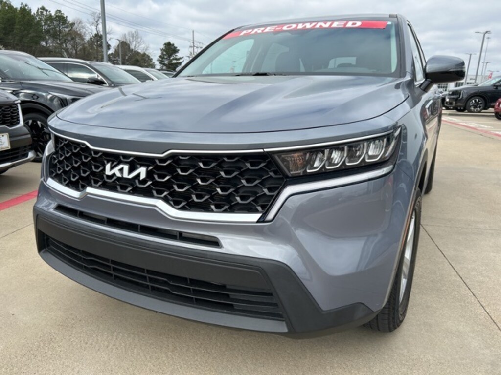 The 2023 Kia Sorento comes with the following features; AWD, 3rd row seats: split-bench, 4-Wheel Disc Brakes, 4.081 Axle Ratio, 6 Speakers, 7.0J x 17" Alloy Wheels, ABS brakes, Air Conditioning, Alloy wheels, AM/FM radio, Apple CarPlay & Android Auto, Auto High-beam Headlights, Brake assist, Bumpers: body-color, Cargo Cover, Cargo Net, Carpet Floor Mats, Cloth Seat Trim, Delay-off headlights, Driver door bin, Driver vanity mirror, Dual front impact airbags, Dual front side impact airbags, Electronic Stability Control, Exterior Parking Camera Rear, Four wheel independent suspension, Front anti-roll bar, Front Bucket Seats, Front Center Armrest, Front reading lights, Fully automatic headlights, Heated door mirrors, Illuminated entry, Knee airbag, Low tire pressure warning, Occupant sensing airbag, Outside temperature display, Overhead airbag, Overhead console, Panic alarm, Passenger door bin, Passenger vanity mirror, Power door mirrors, Power steering, Power windows, Radio data system, Radio: AM/FM Audio System, Rear anti-roll bar, Rear reading lights, Rear seat center armrest, Rear window defroster, Rear window wiper, Remote keyless entry, Security system, Speed control, Speed-sensing steering, Split folding rear seat, Spoiler, Steering wheel mounted audio controls, Tachometer, Telescoping steering wheel, Tilt steering wheel, Traction control, Trip computer, Turn signal indicator mirrors, Variably intermittent wipers, and Wheel Locks. AWD.