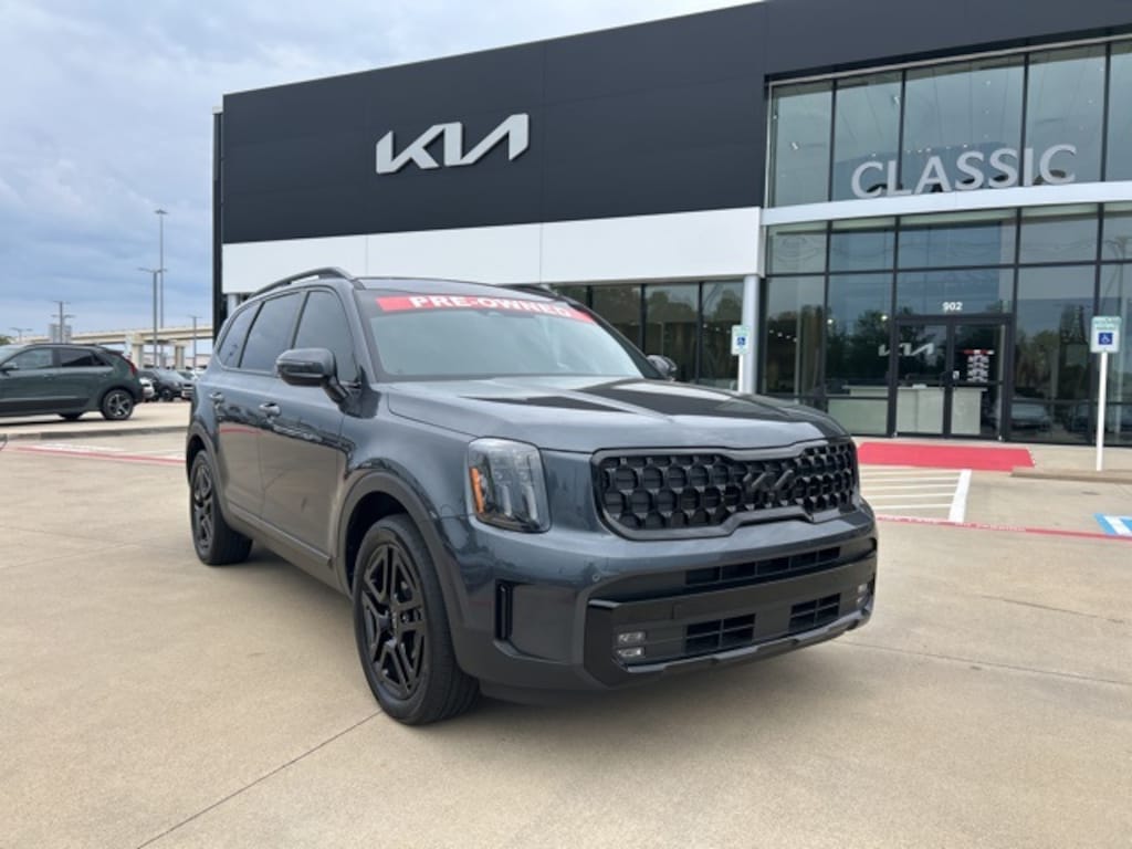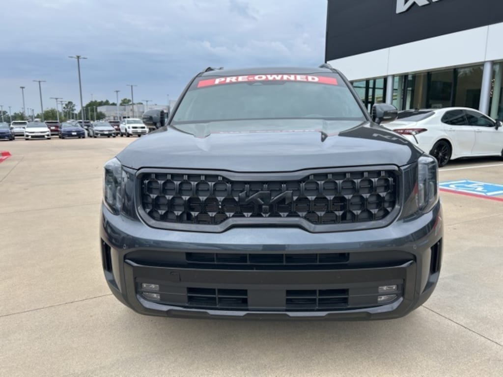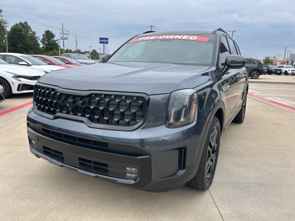The 2024 Kia Telluride comes with the following features; 10 Speakers, 3.648 Axle Ratio, 3rd row seats: split-bench, 4-Wheel Disc Brakes, ABS brakes, Air Conditioning, Alloy wheels, AM/FM radio: SiriusXM, Apple CarPlay & Android Auto, Auto High-beam Headlights, Auto-dimming Rear-View mirror, Auto-leveling suspension, Automatic temperature control, Brake assist, Bumpers: body-color, Cargo Cover, Cargo Tray Seat Back, Carpet Floor Mats, Compass, Delay-off headlights, Driver door bin, Driver vanity mirror, Dual front impact airbags, Dual front side impact airbags, Electronic Stability Control, Emergency communication system: 911 Connect, Exterior Parking Camera Rear, Four wheel independent suspension, Front anti-roll bar, Front Bucket Seats, Front Center Armrest, Front dual zone A/C, Front fog lights, Front reading lights, Fully automatic headlights, Garage door transmitter: HomeLink, harman/kardon® Speakers, Heads-Up Display, Heated & Ventilated Front Bucket Seats, Heated door mirrors, Heated front seats, Heated rear seats, Heated steering wheel, Hybrid Cargo Net, Illuminated entry, Knee airbag, Leather Shift Knob, Leather steering wheel, Low tire pressure warning, Memory seat, Navigation System, Occupant sensing airbag, Outside temperature display, Overhead airbag, Overhead console, Panic alarm, Passenger door bin, Passenger vanity mirror, Power door mirrors, Power driver seat, Power Liftgate, Power moonroof, Power passenger seat, Power steering, Power windows, Premium Nappa Leather Seat Trim, Radio data system, Radio: AM/FM Harman Kardon Audio System, Rain sensing wipers, Rear air conditioning, Rear anti-roll bar, Rear audio controls, Rear reading lights, Rear side impact airbag, Rear window defroster, Rear window wiper, Reclining 3rd row seat, Remote keyless entry, Roof rack: rails only, Security system, Smart Key w/ Push Button and Remote Start, Speed control, Speed-sensing steering, Split folding rear seat, Spoiler, Steering wheel mounted audio controls, Tachometer, Telescoping steering wheel, Tilt steering wheel, Traction control, Trip computer, Turn signal indicator mirrors, Variably intermittent wipers, Ventilated front seats, Ventilated rear seats, and Wheels: 20" x 7.5" Black Finish X-LINE Exclusive.