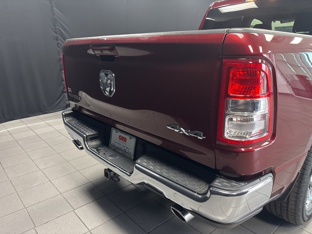 CARFAX One-Owner. Delmonico Red Pearlcoat Big Horn/Lone Star 4WD 8-Speed Automatic HEMI 5.7L V8 Multi Displacement VVT 3 Rear Seat Head Restraints, 40/20/40 Split Bench Seat, 48V Belt Starter Generator, 6 Speakers, Big Horn Badge, Black Exterior Mirrors, Bumpers: chrome, Delay-off headlights, Driver door bin, Dual front impact airbags, Dual front side impact airbags, Electronic Stability Control, Front Center Armrest w/Storage, Front fog lights, Front Seat Back Map Pockets, Fully automatic headlights, GPS Antenna Input, Heated door mirrors, Illuminated entry, Integrated Voice Command w/Bluetooth, Leather steering wheel, Low tire pressure warning, Outside temperature display, Overhead airbag, Overhead console, Panic alarm, ParkView Rear Back-Up Camera, Passenger door bin, Power door mirrors, Power steering, Power windows, Quick Order Package 23Z Big Horn, Quick Order Package 27Z Big Horn, Rear step bumper, Remote keyless entry, Remote Start System, Speed control, Steering wheel mounted audio controls, Telescoping steering wheel, Tilt steering wheel, Voltmeter.