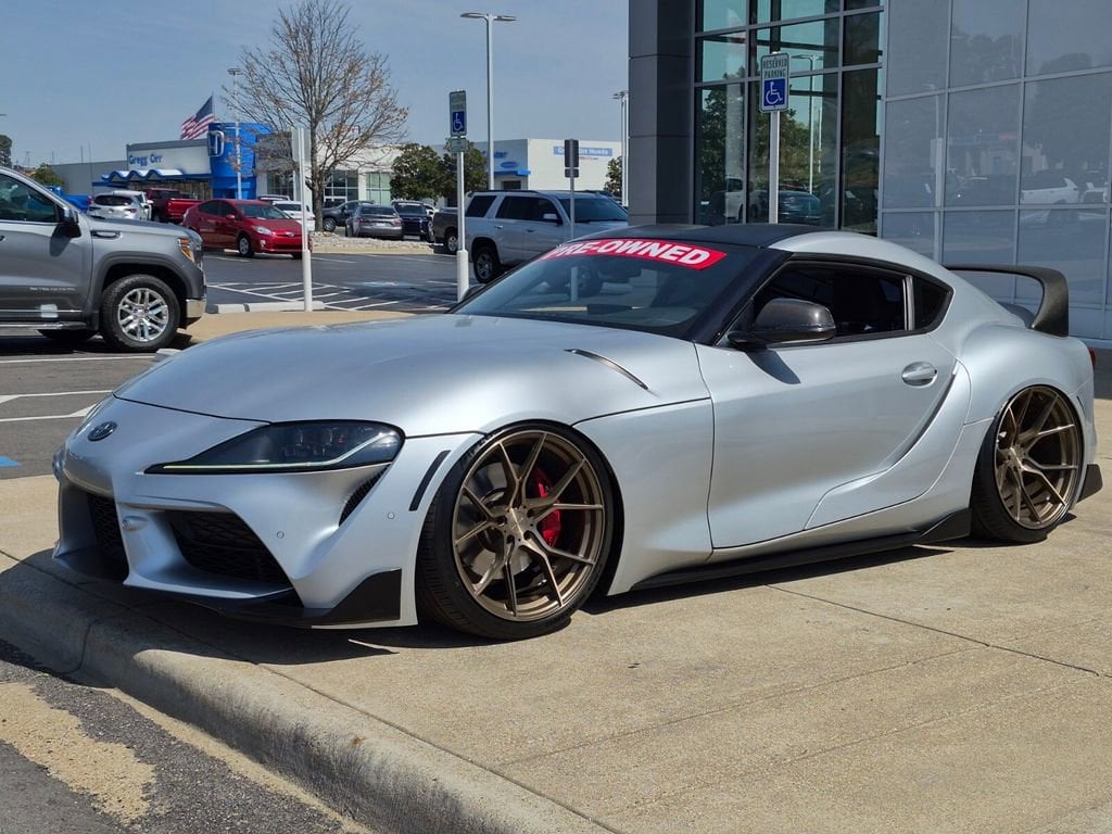 This 2020 Toyota Supra comes equipped with, 4-Wheel Disc Brakes, ABS brakes, Adaptive Cruise Control w/Stop & Go, Adaptive suspension, Air Conditioning, Alloy Wheel Locks, Alloy wheels, AM/FM radio: SiriusXM, Apple CarPlay, Auto High-beam Headlights, Auto-dimming door mirrors, Automatic temperature control, Blind Spot Monitor, Brake assist, Bumpers: body-color, Carbon Fiber Mirror Caps, Cargo Tote, Carpet Cargo Mat, Child-Seat-Sensing Airbag, Clearance & Back Up Sonar, Delay-off headlights, Driver Assist Package, Driver door bin, Driver vanity mirror, Dual front impact airbags, Dual front side impact airbags, DVD-Audio, Electronic Stability Control, Emergency Assistance Kit, Emergency communication system, Exterior Parking Camera Rear, First Aid Kit, Four wheel independent suspension, Front anti-roll bar, Front Bucket Seats, Front Center Armrest, Front dual zone A/C, Front fog lights, Front reading lights, Fully automatic headlights, Garage door transmitter: HomeLink, Heated door mirrors, Illuminated entry, Knee airbag, Leather Shift Knob, Leather steering wheel, Low tire pressure warning, Memory seat, Navigation System, Occupant sensing airbag, Outside temperature display, Overhead airbag, Panic alarm, Passenger door bin, Passenger vanity mirror, Power door mirrors, Power driver seat, Power passenger seat, Power steering, Power windows, Radio data system, Radio: 500-Watt AM/FM JBL Audio w/12 Speakers, Rain sensing wipers, Rear anti-roll bar, Rear Cross Traffic Alert, Rear window defroster, Remote keyless entry, Security system, Speed control, Speed-sensing steering, Speed-Sensitive Wipers, Steering wheel mounted audio controls, Tachometer, Telescoping steering wheel, Tilt steering wheel, Traction control, Trip computer, Turn signal indicator mirrors, Variably intermittent wipers, Wheels: 19" Forged Aluminum w/Painted Accents. Odometer is 21460 miles below market average!